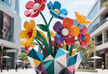 • 《綻城?綺夢花簇》:都市園林里的不銹鋼景觀,盛綻彩色花束織就鮮活日常
